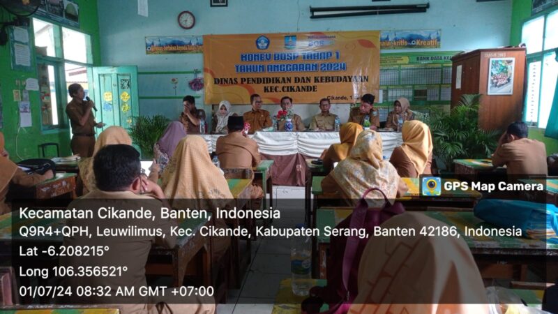 Dinas Pendidikan dan Kebudayaan Kabupaten Serang menerjunkan tim Pengawas melakukan monitoring dan evaluasi (Monev) realisasi penggunaan dana Bantuan Operasional Satuan Pendidikan (BOSP) pada Sekolah Dasar dan Sekolah Menengah Pertama. Sesuai jadwal, hari ini, monev dilaksanakan di Cikande, memakai beberapa ruangan di SDN Julang, Senin (1/7/24).
