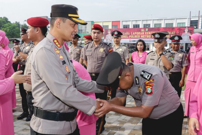 Kapolres Metro Tangerang Kota, Komisaris Besar Polisi Zain Dwi Nugroho memimpin upacara kenaikan pangkat periode 1 Juli 2024 diikuti oleh sebanyak 283 personel Polres Metro Tangerang Kota, Polda Metro Jaya. Selasa (2/7/2024).