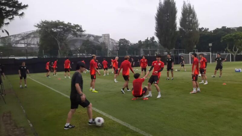 Sekitar pukul 17.20 WIB, para pemain timnas Jepang tiba di lokasi latihan dan segera melaksanakan pemanasan sesuai instruksi pelatih Hajime Moriyasu. Beberapa pemain kunci, seperti Takumi Minamino dan Zion Suzuki, tampak hadir dalam sesi latihan tersebut.