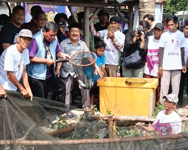 Acara panen raya ikan air tawar di Kampung Gandaria Masjid, RT 002, RW 002, Desa Gandaria, Kecamatan Mekar Baru, kian meriah dengan kehadiran calon Bupati Tangerang, Maesyal Rasyid, Selasa (08/10/2024).