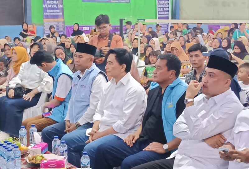 Lebih dari 1.000 orang dengan penuh semangat dan kegembiraan berduyun-duyun datang ke GOR Salembaran Jati, mengikuti acara kampanye yang dihadiri Calon Bupati Tangerang Maesyal Rasyid dan Calon Gubernur Banten Dimyati Natakusuma.