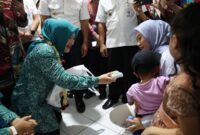 BANTEN | Bantenraya.co Penjabat (Pj) Ketua Tim Penggerak Pemberdayaan dan Kesejahteraan Keluarga (TP PKK) Provinsi Banten, Tine Al Muktabar menyerahkan bantuan Nugget Ikan Patin…