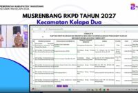Bantenraya.co | TANGERANG Musyawarah Perencanaan Pembangunan (Musrenbang) RKPD Kecamatan Kelapa Dua, Kabupaten Tangerang, Selasa (27/1/2026) di Aula Kantor Kecamatan Kelapa Dua. Dimentori Duo D…