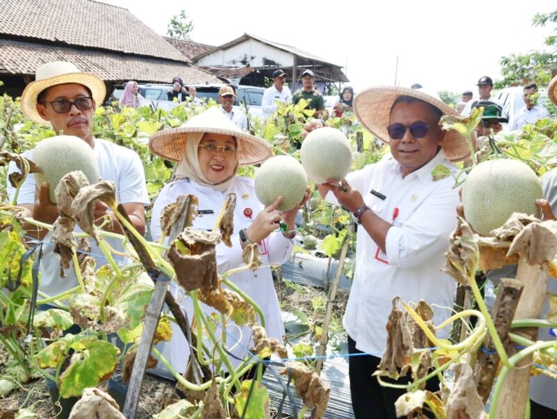 Wabup Intan Bareng Petani Wanita Panen Buah Melon